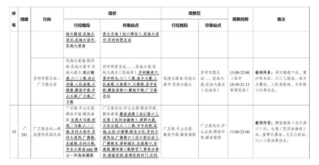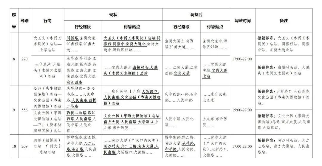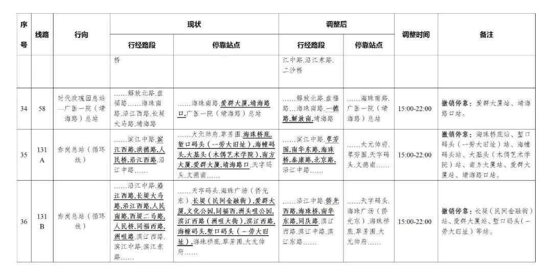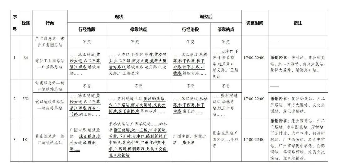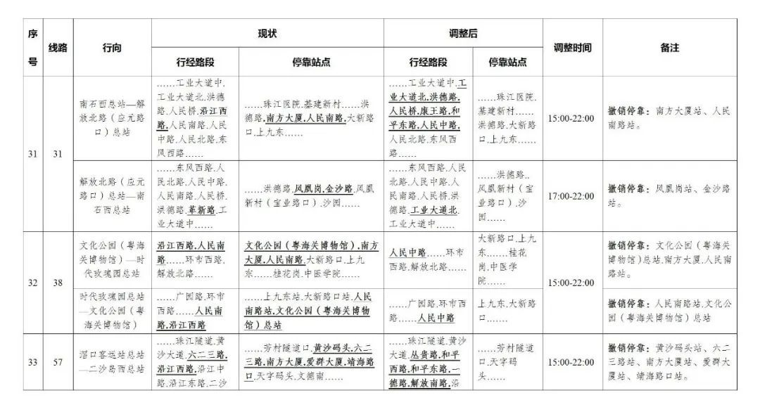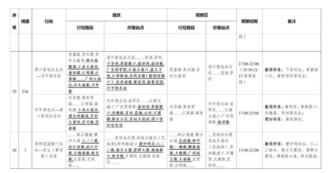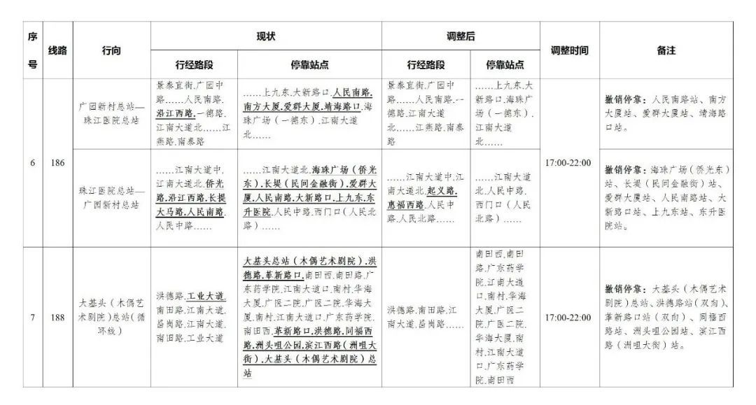 今天,广州部分公交线路、水上公交航班,也有调整。