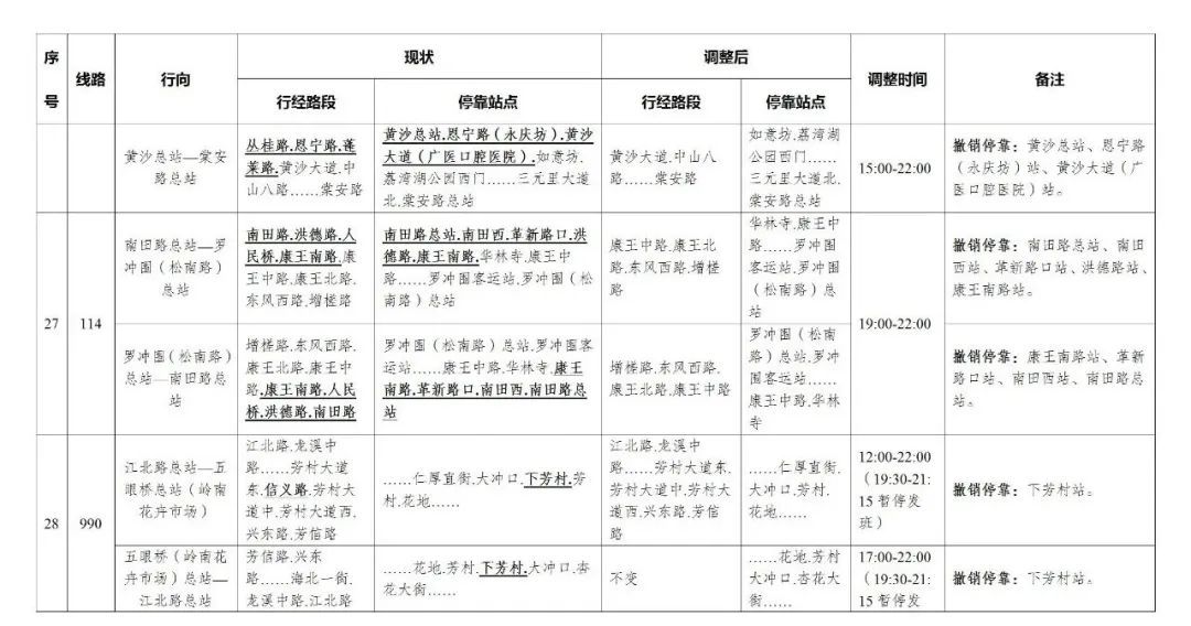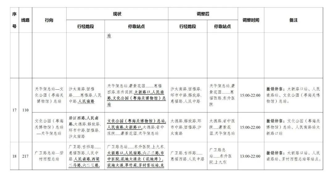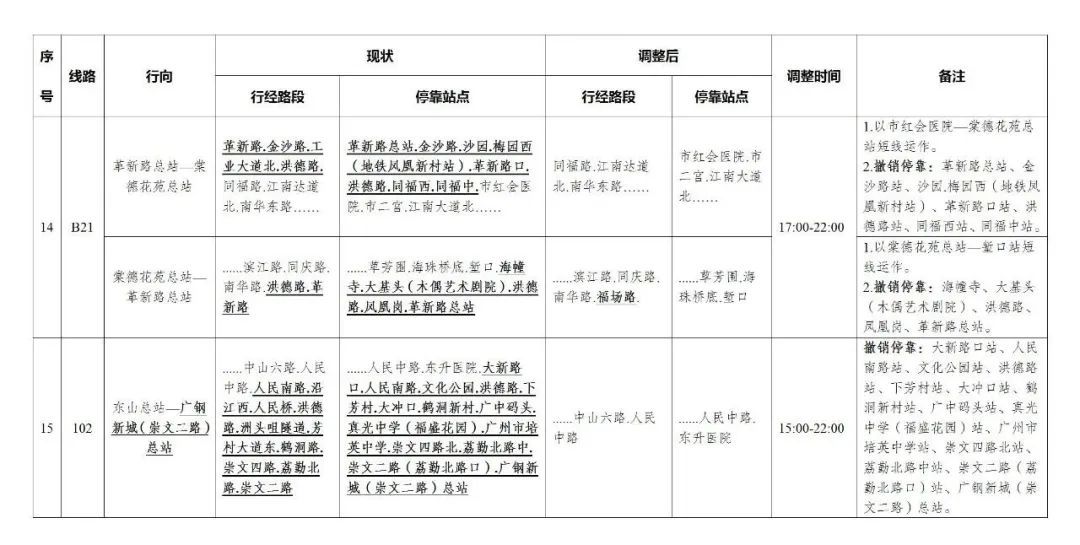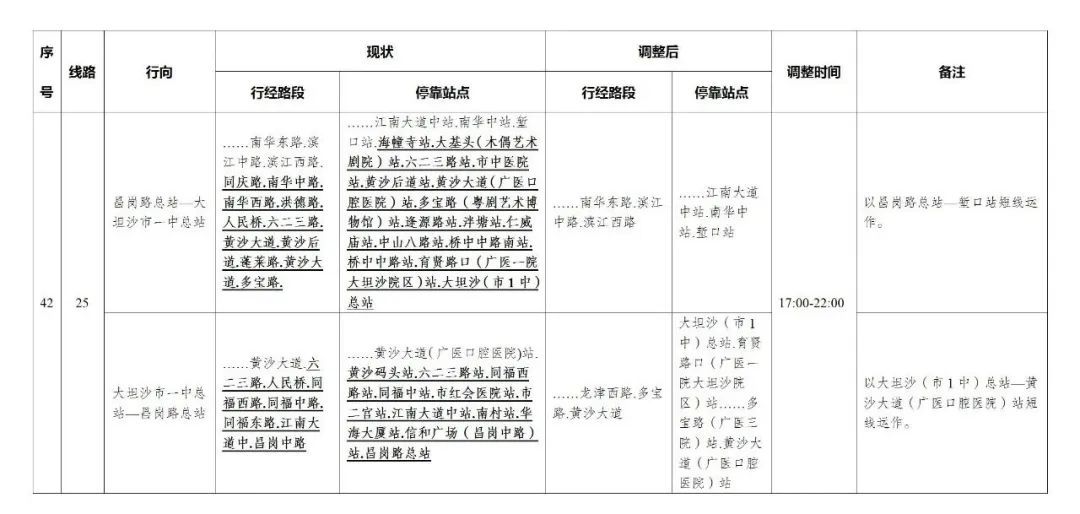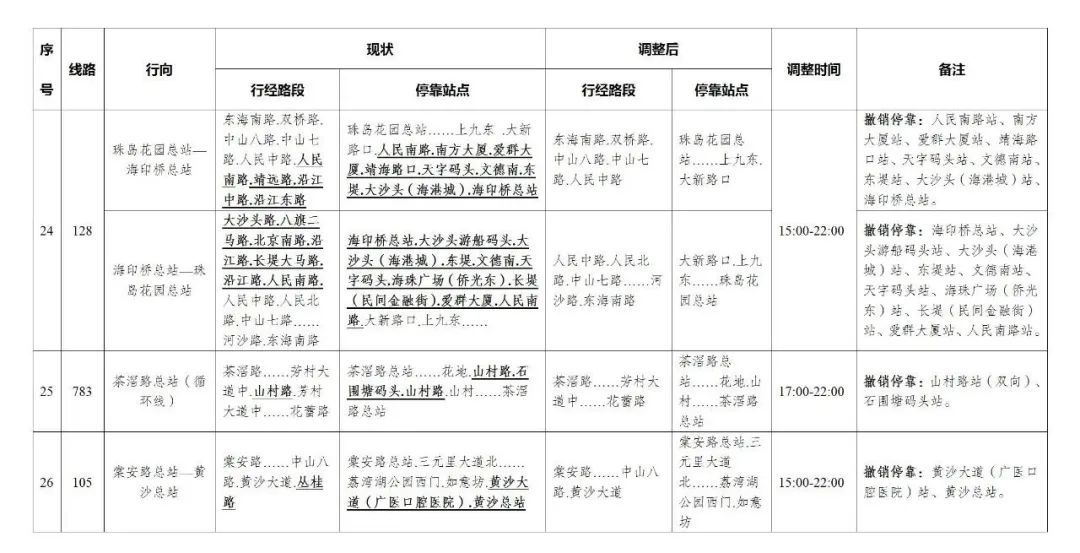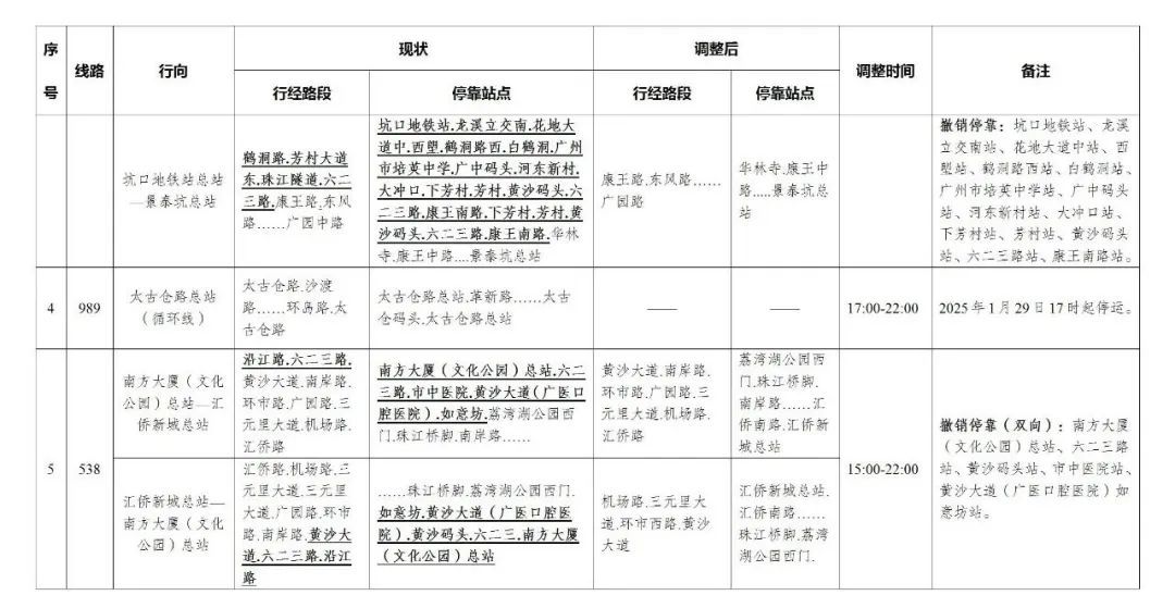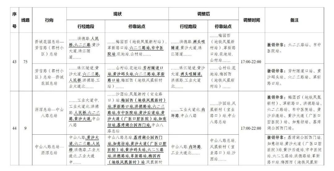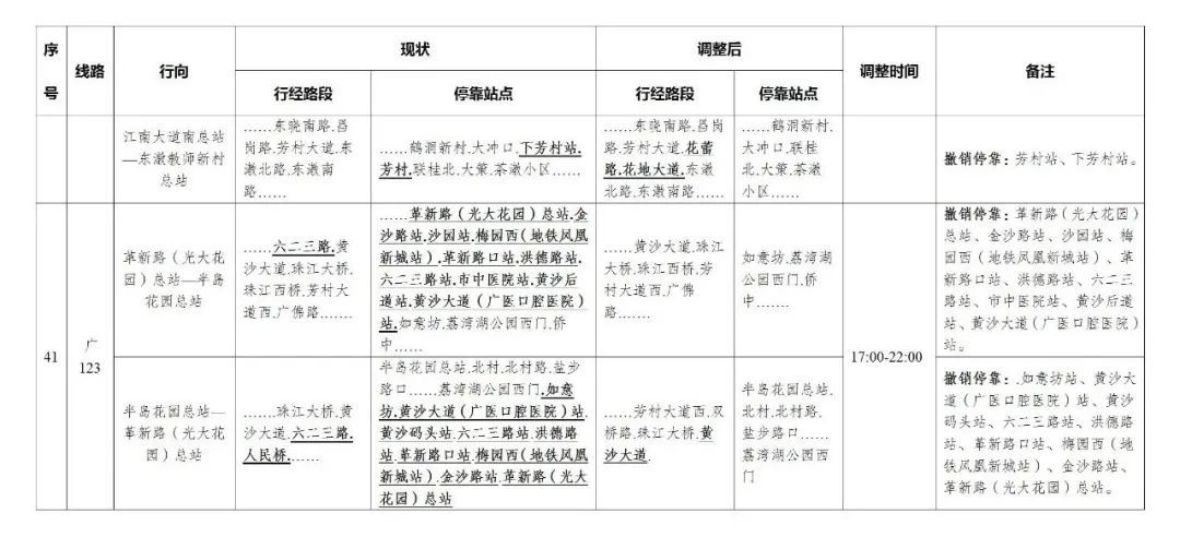 今天,广州部分公交线路、水上公交航班,也有调整。